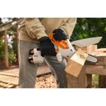 Urządzenie napędzane jest mocnym bezszczotkowym silnikiem EC, współpracującym z łańcuchem STIHL 1/4″ PM3 i prowadnicą Light 01, co pozwala na czyste i precyzyjne cięcie gałęzi do 15 cm średnicy. System beznarzędziowego napinania łańcucha z pomarańczową dźwignią napinającą ułatwia regulację i montaż prowadnicy nawet w rękawicach. Dzięki wysokiej wydajności cięcia oraz dwóm akumulatorom zapewniającym dłuższy czas pracy, GTA 30 to doskonały wybór do bardziej wymagających zadań związanych z obróbką drewna w gospodarstwie domowym.